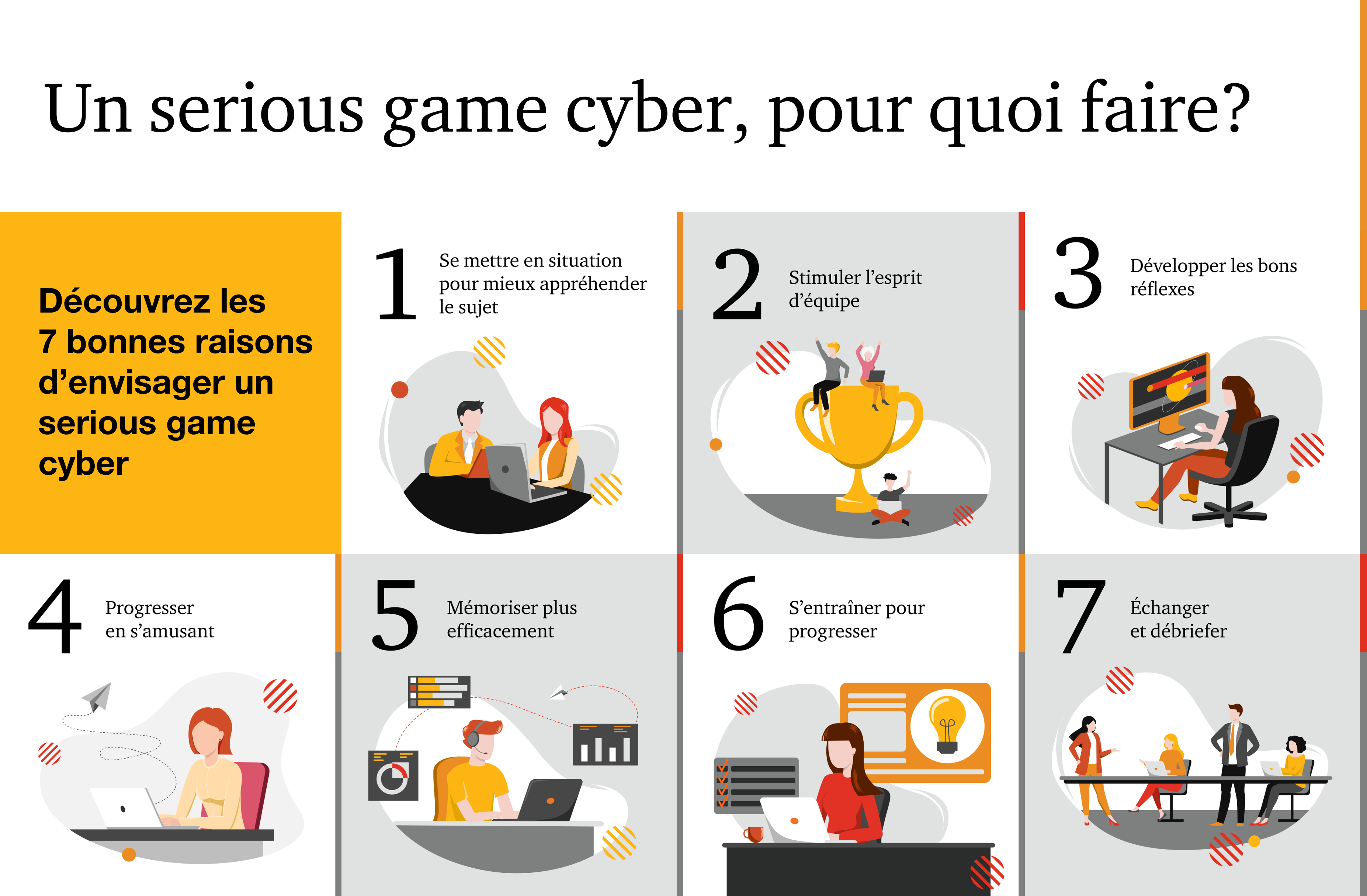 Faites vivre à vos collaborateurs et /ou Management Group l’expérience d’une cyberattaque entemps réel. A travers une expérience immersive, sensibilisez etformez vos collaborateurs à la gestion de crise et donnez les moyens à votre organisation de se préparer véritablement.
