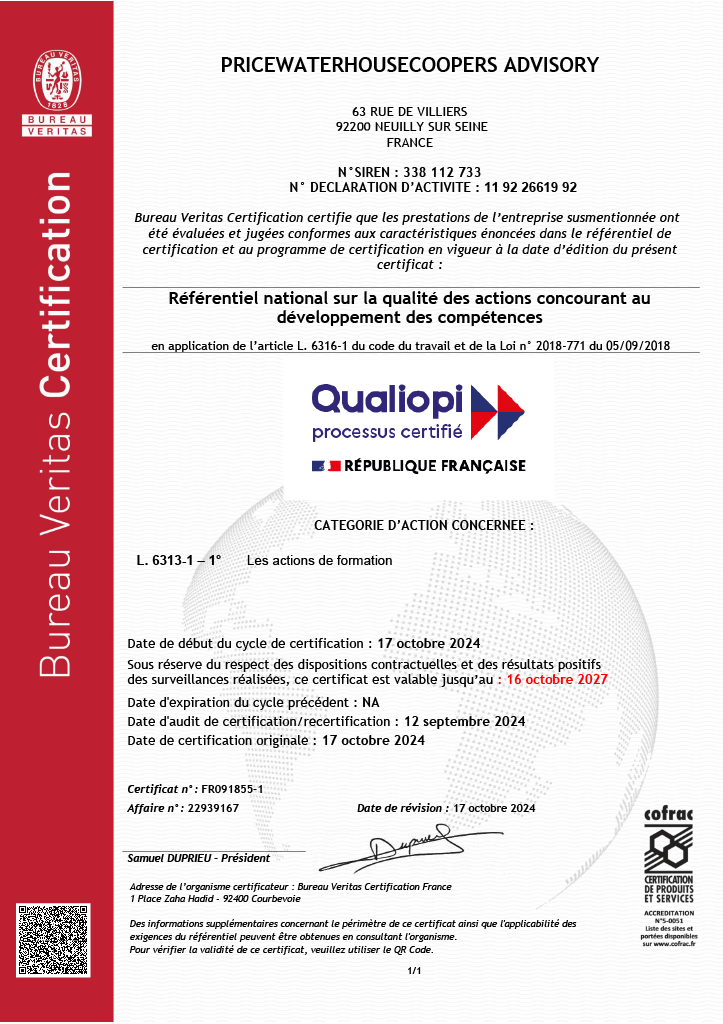 Si la société à laquelle vous appartenez - ou une entité affiliée à ladite société - est auditée par PwC, la confirmation de votre inscription est conditionnée à l'analyse des règles d'indépendance applicables.